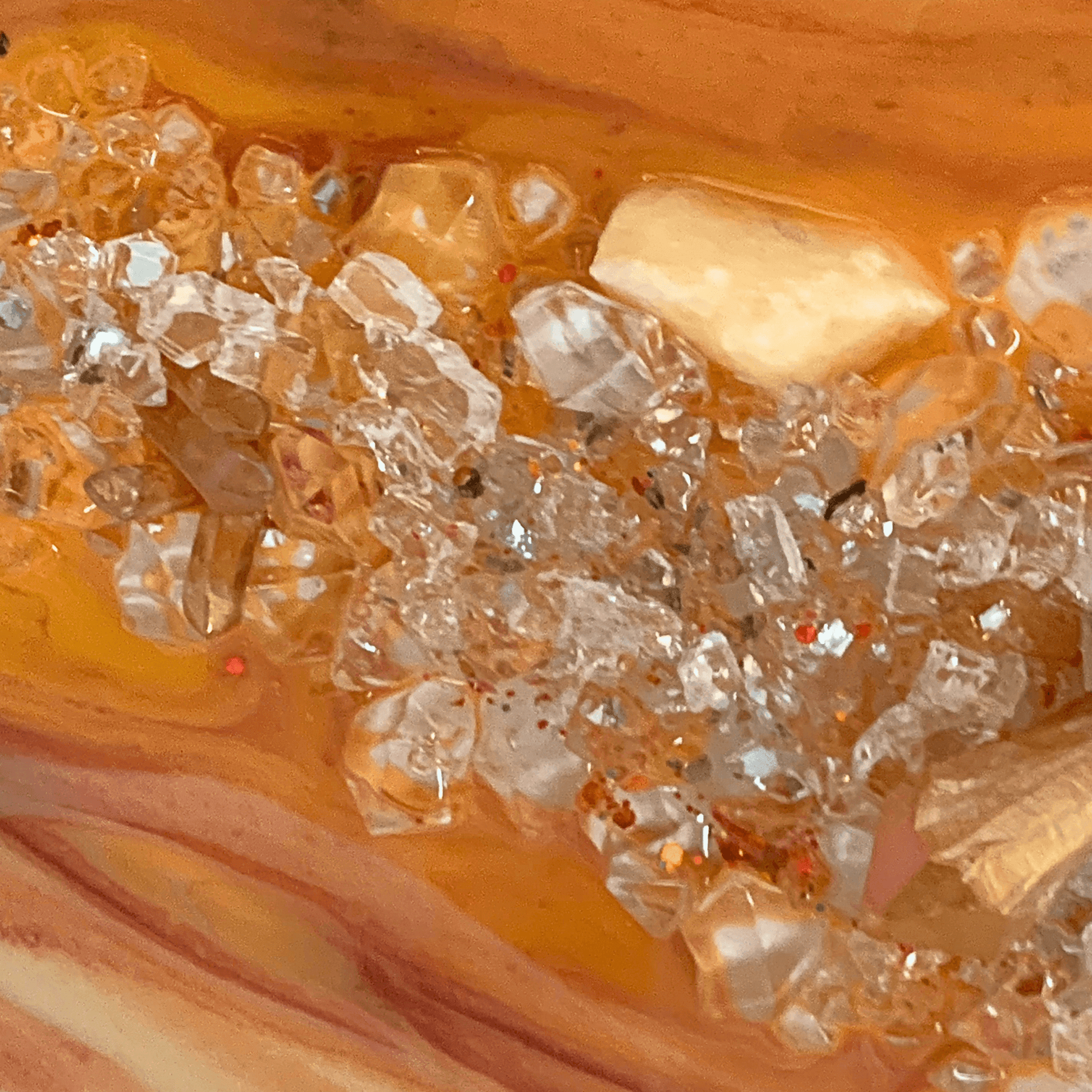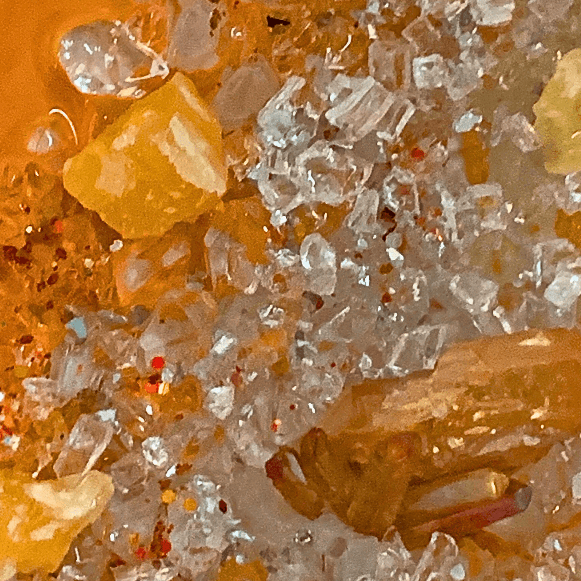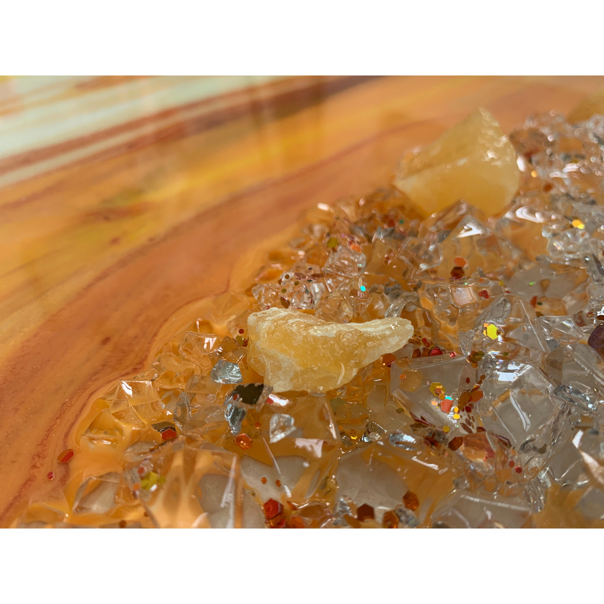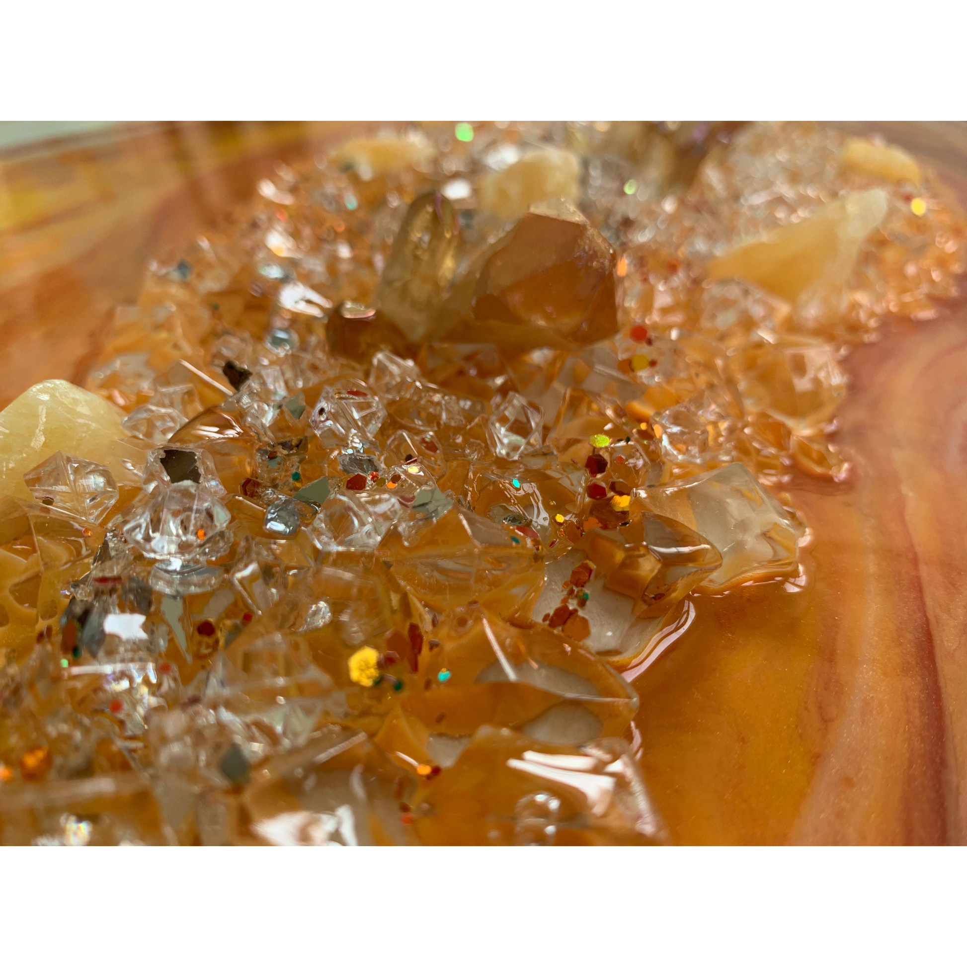Featuring orange aura quartz and orange and yellow calcite crystals, some of my favorites!