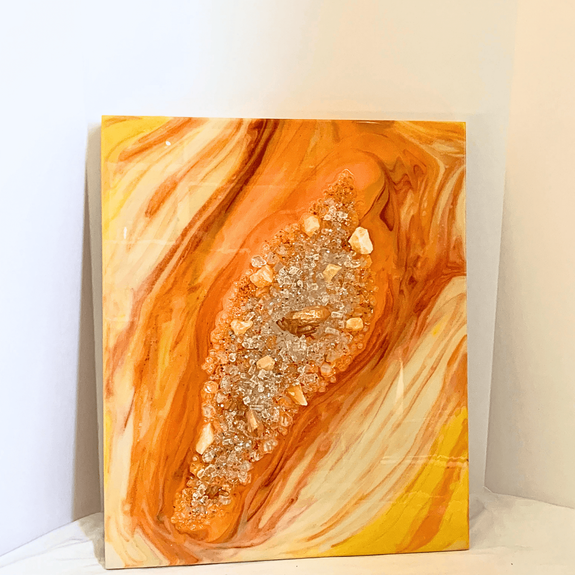 This 20x22 inch cradled wood panel has a lot of beautiful crystals and colors!